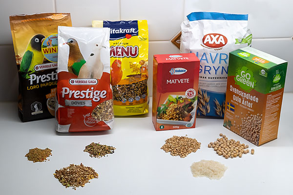 Allra bäst är att ge fågeln den mat den bör äta. I våra matvaruaffärer, som har längre öppettider än zooaffärerna, brukar det finnas fågelfrö i hyllan där det säljs djurmat.